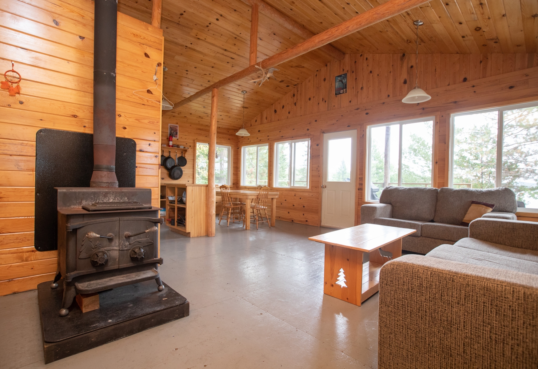 The Ajax Lake outpost cabin is designed so you can focus on fishing without sacrificing comfort. The cabin sleeps up to 8 guests and includes: